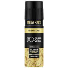 Introducing Gold Temptation Deodorant by Axe. It offers a wide range of long-lasting fragrances, no-gas perfumes and male grooming products, Axe is your wingman for all your daily grooming needs. These deodorants for men are formulated with 48HR Dual Action Technology that keeps you smelling great, feeling fresh and having lasting odour protection. So, now you know why Axe is the perfect pick for your daily grooming needs. The tempting gold fragrance and the Suave mix of exotic spices and citrusy notes open new avenues of freshness and confidence. The Axe Gold Temptation's long-lasting Deo for men gets you used to emanate the best fragrance there is a dark, gold one.