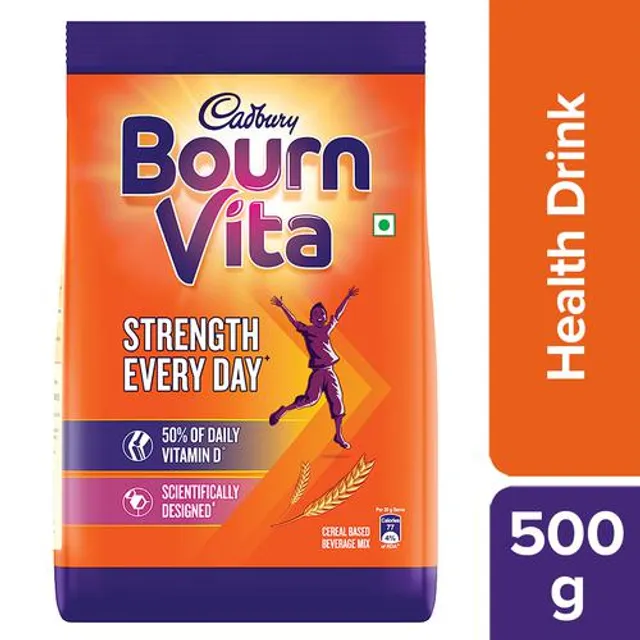 Cadbury Bournvita is a nutrition brand with a 70 year legacy in India. Cadbury Bournvita is a health food drink with inner strength formula which has nutrients that support - Immune system(8 immunity nutrients), Strong bones (Vitamin D, Phosphorous), Strong muscles (Protein, Vitamin D) and Active Brain(Iron, Iodine, Vitamin B2, Vitamin B12). Recommended 2 serves per day as part of a balanced diet and a healthy lifestyle.