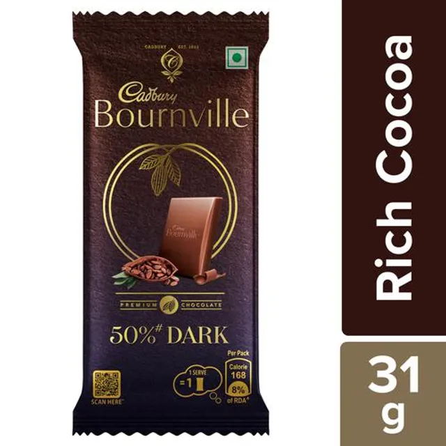 Cadbury Bournville is a premium dark chocolate that delivers an intense, fine, and indulgent experience to lovers of dark chocolate! Each Bournville dark chocolate bar is made from the finest cocoa sourced from some of the best places around the world, perfectly roasted for an intense taste. Dark chocolate with lower quantities of sugar is known for its health benefits. Cadbury Bournville is made from the finest ingredients that give you a rich, intense lingering taste. This dark chocolate pack is perfect to gift or to reward yourself with an immersive intense experience. Along with this 50% dark chocolate, also try other variants of Bournville chocolate – 70% dark, cranberry, and fruit & nut. Every chocolate box of Cadbury Bournville is made from 100% sustainably sourced cocoa. It is suitable for vegetarians.