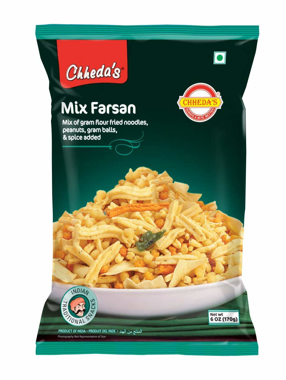 Mixed farsan refers to a mixture of roasted or fried ingredients like chiwda(rice flakes), papdi(salted fried gram flour cookies),cornflakes, peanuts, roasted moth beans, dried fruits,salt and spices. Farsan is popular snacking item in Gujarati and Rajasthani cuisine.