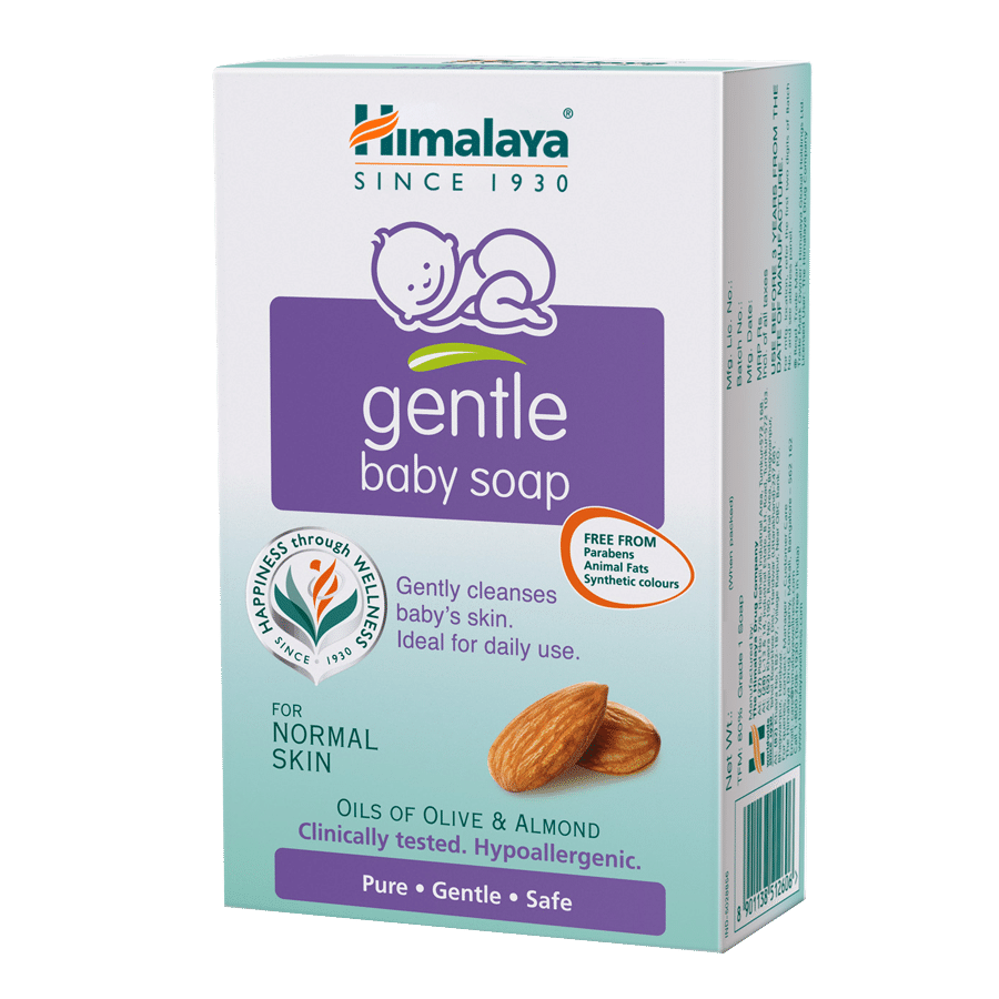 Himalaya moisturizing baby soap is enriched with olive oil that softens and protects skin, preventing it from chafing. ... Its antimicrobial properties will keep your baby's skin soft and healthy. This soap also contains the goodness of milk that keeps the skin soft and smooth.