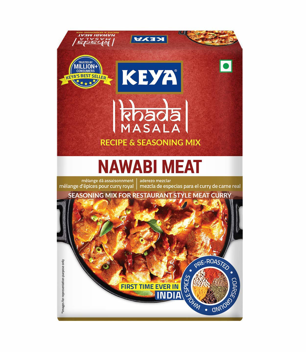 Keya khada masala blends are whole spice mixes, hand picked in the right proportion by expert chefs, gently blended and coarse ground to unlock its taste and aroma only while cooking. The magic of aroma locked nawabi meat masala comes alive with flavourful bursts of real whole spices.