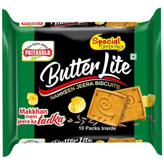 Priyagold Butter Lite Jeera is an extra crunchy, tasty, butterlicious salty Biscuit and natural proteins from real cumin seeds. As an ethnic Indian biscuit, it is an utter delight with a slightly crunchy and crumbly texture coupled with a rich buttery flavour. Crisp to the bite along with a dash of jeera (cumin seeds) and mixed spices, these biscuits are light and airy. Refreshingly sweet and subtly salty, these biscuits are here to please your taste buds. Available in portion packs, value packs and jumbo packs.
