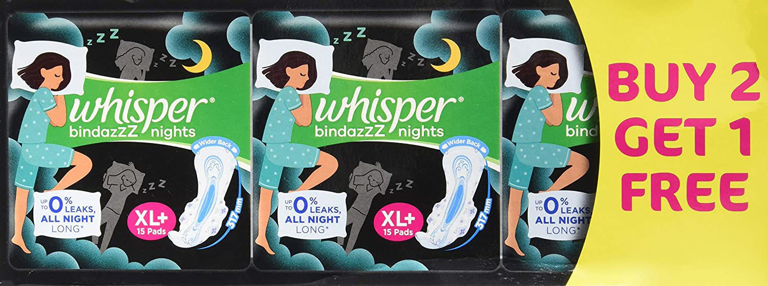 Now upgrade to Whisper Ultra Nights XL+ Wings Extra Heavy flow for overnights during heavy flow vs an ordinary pad vs Indian average load per pad
